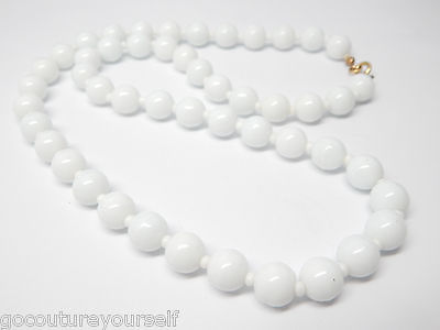 ANTIQUE TRUE MILK-GLASS BEAD 24" LONG VTG NECKLACE
