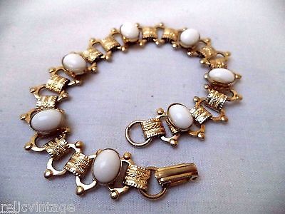 STUNNING VINTAGE ESTATE GOLD TONE MILK GLASS PATTERN DETAILED BRACELET!!! 6154F