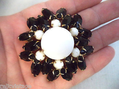 STUNNING VINTAGE ESTATE JULIANA D&E MILK GLASS RHINESTONE FLOWER BROOCH!!! G666