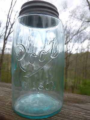 Title (ebay affiliate link): Antique ROOT Mason Fruit / Canning Quart Jar Aqua Zinc Milk Glass Lined Lid