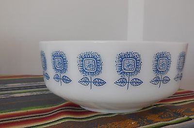 FEDERAL Milk Glass Bowl Blue Sunflowers 3 QT Vintage 1960's Lot M3