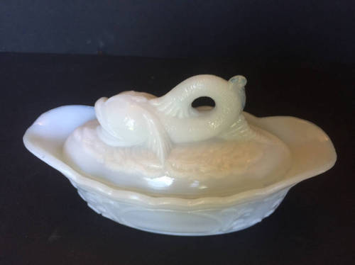 Vintage Milk Glass Fish Dolphin Covered Dish