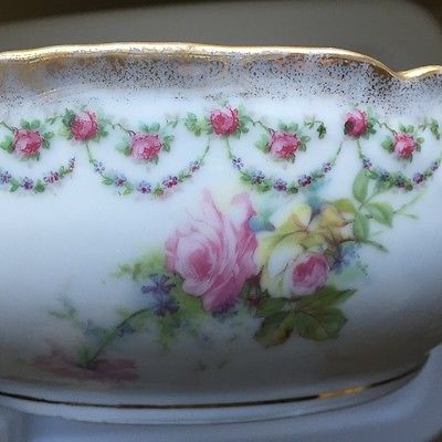 Title (ebay affiliate link): Vintage Porcelain 9 1/2" Centerpiece Bowl Roses Garland Pattern with Gold Trim