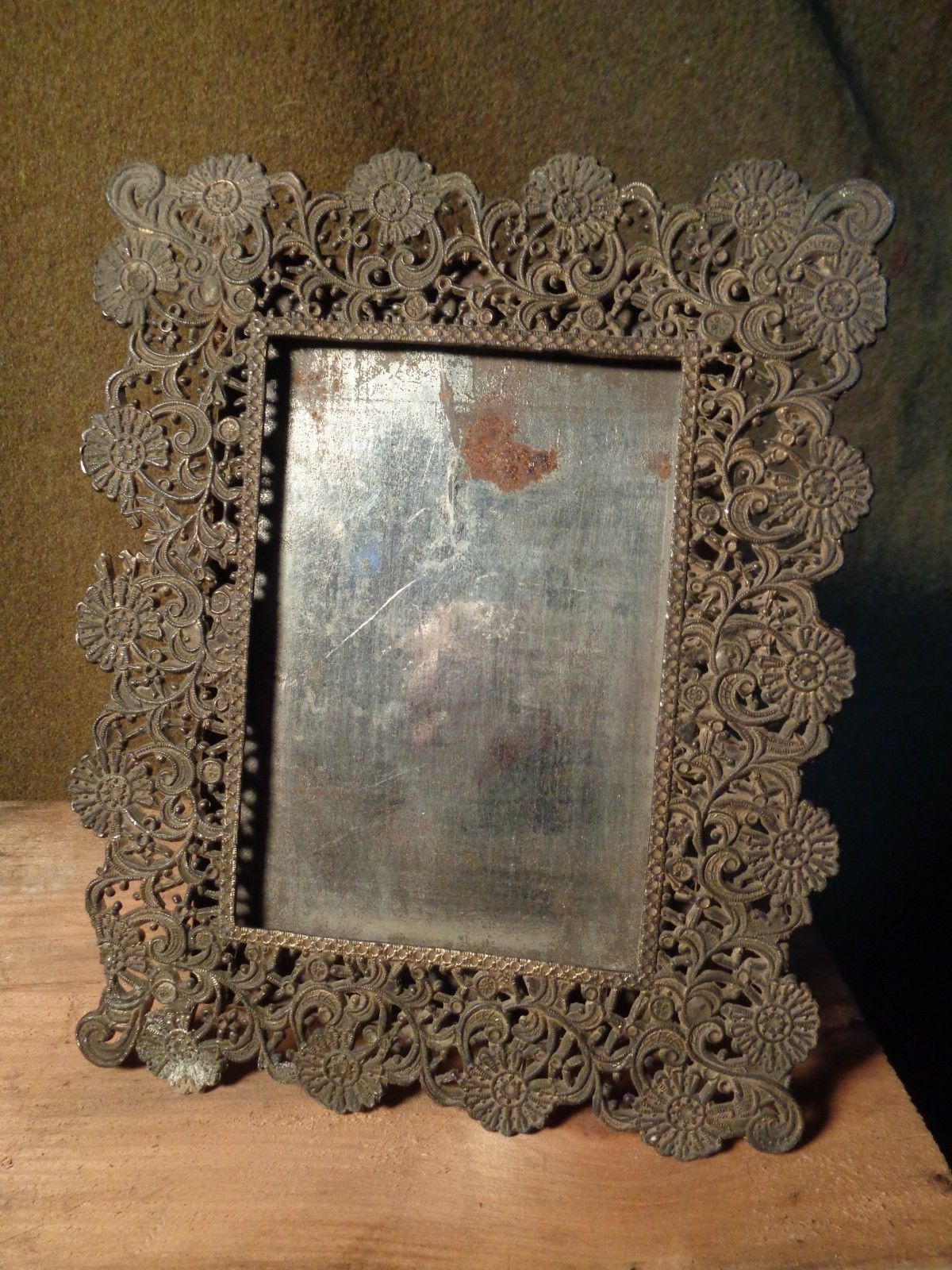 Title (ebay affiliate link): Antique Cast ornate BRASS? & TIN metal PICTURE FRAME with WIRE EASELBACK