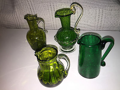 Title (ebay affiliate link): ANTIQUE PITCHERS * Lot of 5 * MILK Juice TEA Green Mint Crackle Blenko Glass