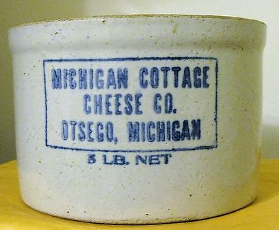 ANTIQUE MICHIGAN COTTAGE CHEESE Co. Crock, Circa 1900 OTSEGO