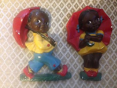 Black Americana Children boy and girl with Umbrella plaques