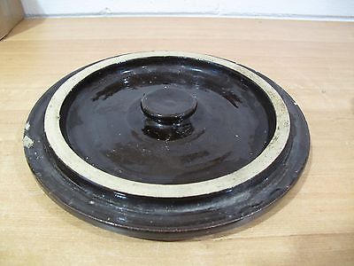 Antique Pickling Stoneware Crock Cobalt Blue Brown Vintage Stoneware Lid