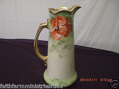 HUGE ANTIQUE 15" HAND PAINTED TANKARD / PITCHER