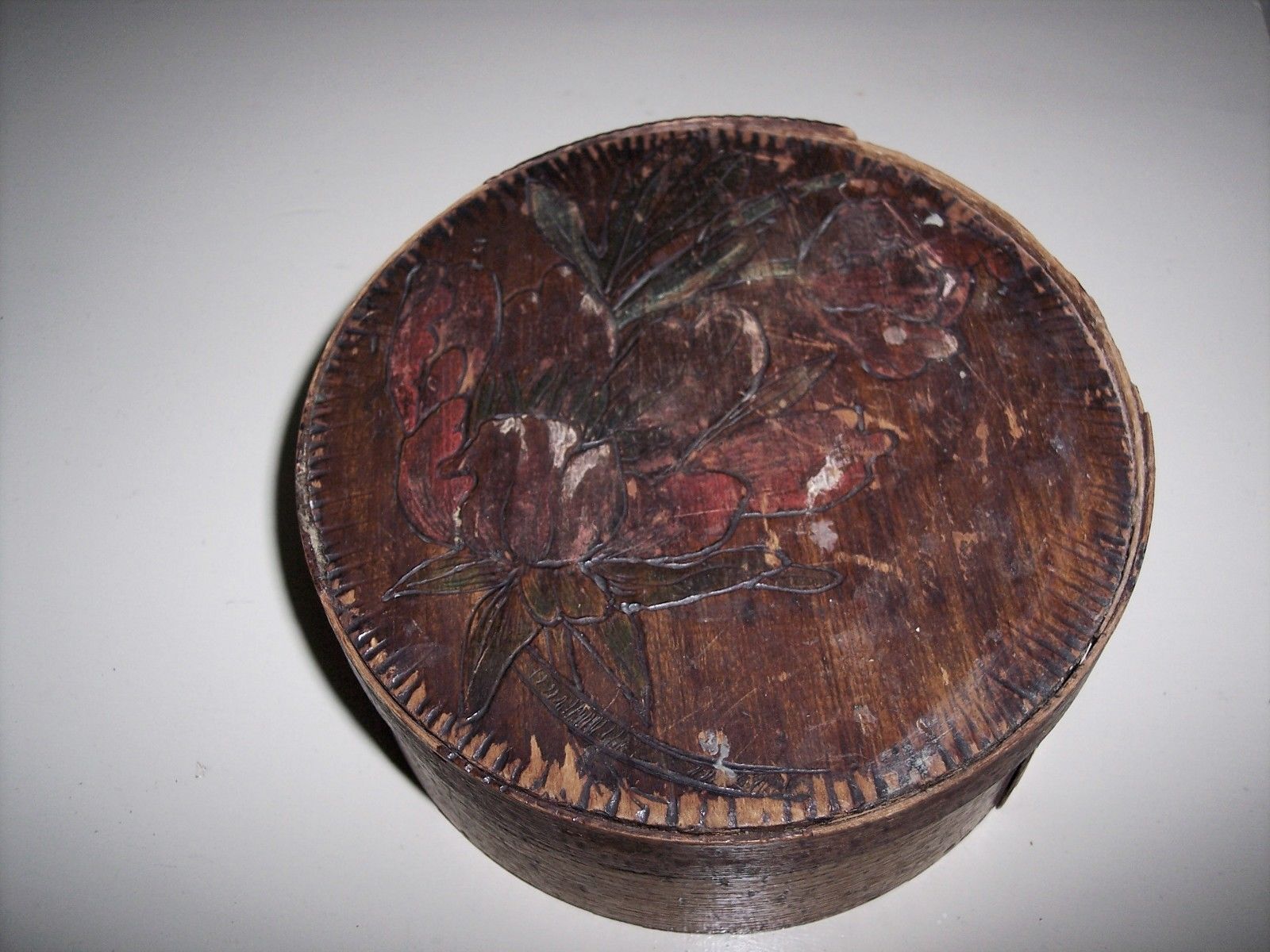 Title (ebay affiliate link): Vintage Country PrImitive Bentwood Round Pyrography Pantry Sewing Wood Box