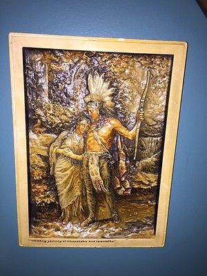 Title (ebay affiliate link): Arthur Osborne ivorex 3-D plaque of Wedding Journey of Minnehaha and Hiawatha