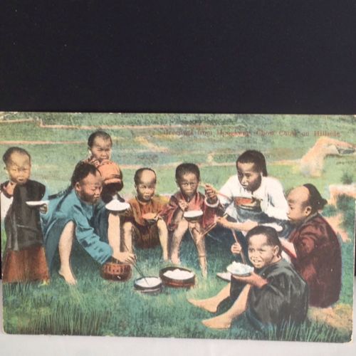 Title (ebay affiliate link): Hong Kong China Old Postcard Chow Chow On Hillside Chinese Boys Eating Rice Bowl