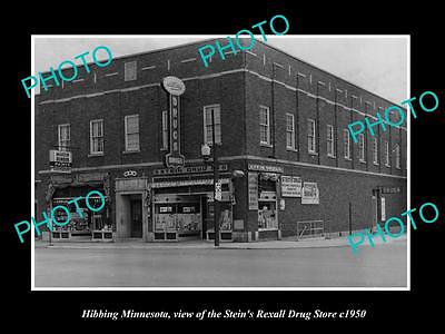 OLD LARGE HISTORIC PHOTO OF HIBBING MINNESOTA, THE STEIN REXALL DRUG STORE c1950