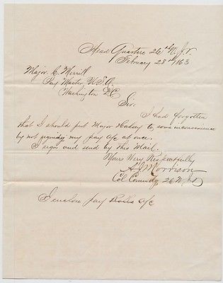 Title (ebay affiliate link): Civil War Union Colonel Morrison, 26th NJ, to Pay Master 1863 GREAT!