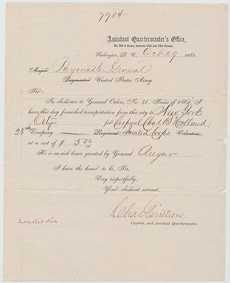 Title (ebay affiliate link): Invalid Corps Civil War Document 1863 Corporal Holland transports to NYC!