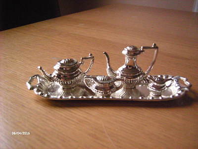 Minature set of Silver Tone Metal Victorian styled Tea Service (Dolls House)