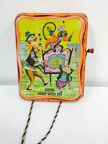 Title (ebay affiliate link): Vintage 1950's Mattel # 501 Toy Wind-up Merry Music Box w/Organ Grinder Monkey