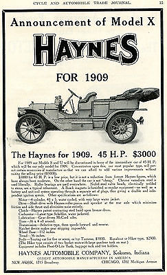 1908 HAYNES CAR AUTOMOBILE COMPANY AD SPLITDORF MAGNETO AND SPARK PLUG AD