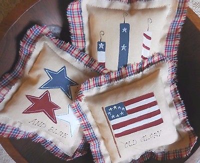 Title (ebay affiliate link): Primitive Patriotic Bowl Filler Pillows Flag Stars Firecrackers Folk Art Ornies