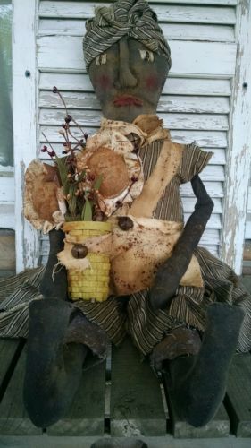 Title (ebay affiliate link): Primitive mammy doll basket of daisies by Alongthebrickroad