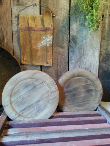 Title (ebay affiliate link): Antique Primitive Farmhouse Make Do Wood Plates Dishes Country Old