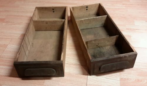 Title (ebay affiliate link): 2 - Vtg Handmade Medium Wood Drawers Parts Bins Boxes Industrial