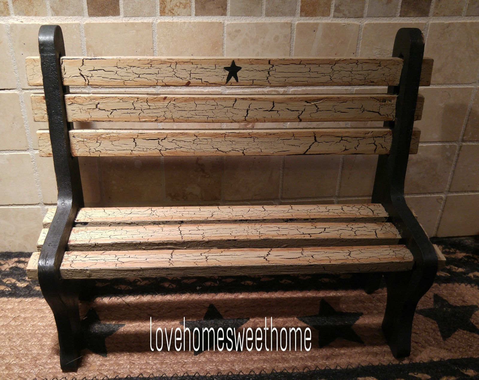 Title (ebay affiliate link): Primitive Crackle Tan & Black Star Wood Bench ~ Country Decor