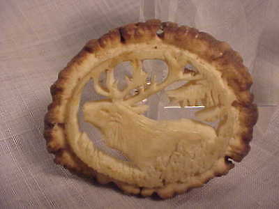 Antique Hand 50mm by 42mm Carved Antler Bone Brooch or deer elk insignia See!