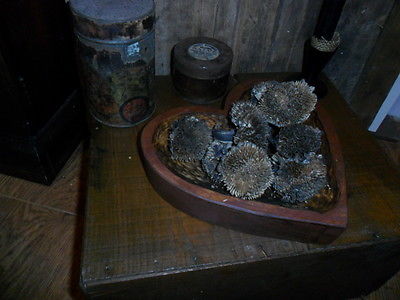 Title (ebay affiliate link): Primitive Wooden Heart Shaped Bowl, Nicely Carved, Filled w/Sunflower Heads
