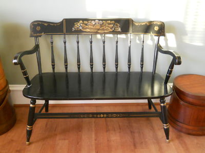 Title (ebay affiliate link): VTG BARRETT ORNATE BLACK W GOLD ACCENTS DEACONS BENCH