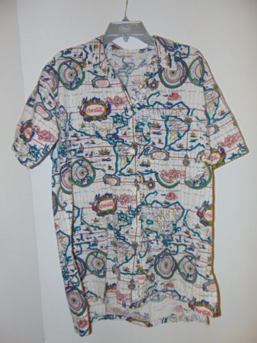 Title (ebay affiliate link): VINTAGE COKE SHIRT Men's Small ANTIQUE WORLD MAP PRINT Coca-Cola Top UNIFORM S S