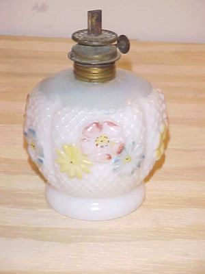 ANTIQUE MINIATURE COSMOS MILK GLASS OIL LAMP BASE