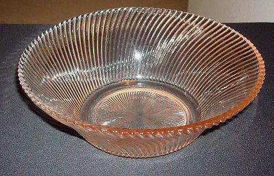 Vintage Pink Glass Ribbed Serving Bowl