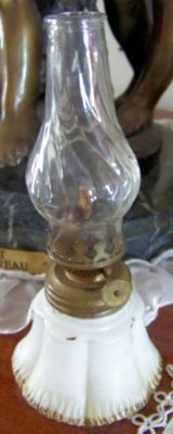 VINTAGE ANTIQUE MINIATURE OIL LAMP VICTORIAN MILK GLASS