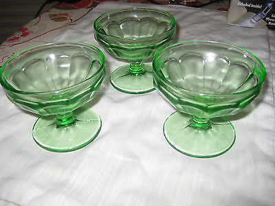 3 Green Depression Glass Dessert Cups / Ice Cream Dishes Footed Vintage NICE!