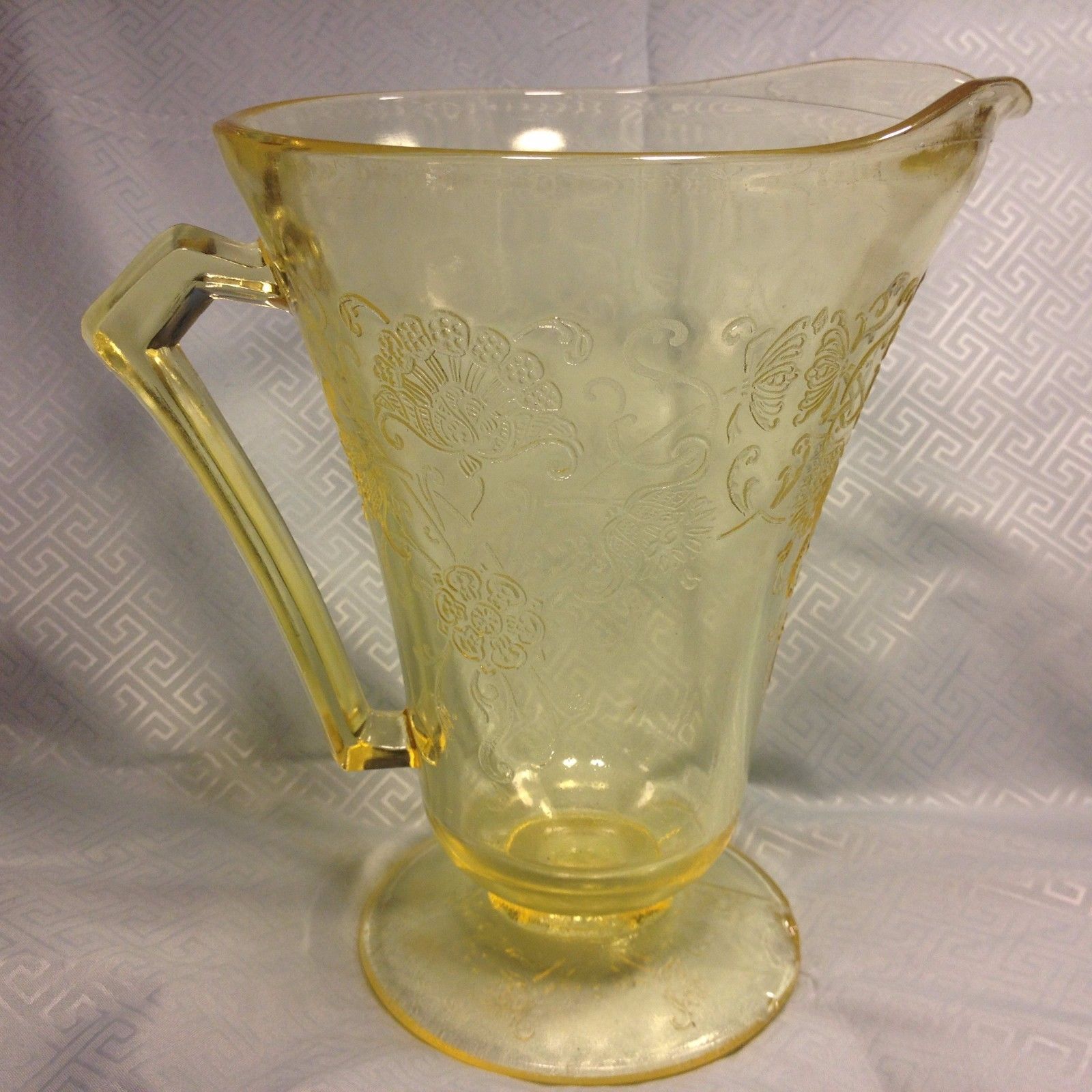Title (ebay affiliate link): VINTAGE DEPRESSION "YELLOW GLASS" PITCHER HAZEL ATLAS FLORENTINE SALE