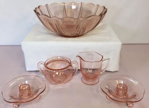 Vintage Lot Of 5 Piece Pink Depression Glass
