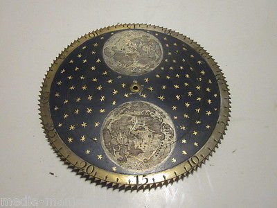 ANTIQUE AHM BRASS GEARED GRANDMA CLOCK MOON PHASES FACE CLOCK PART