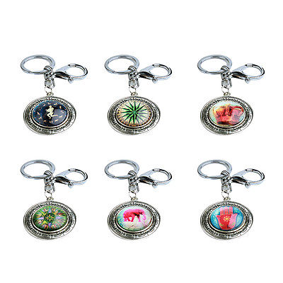 New 6pcs Elephant Glass Cabochon Antique Silver Pendant Key Chains Key Holder