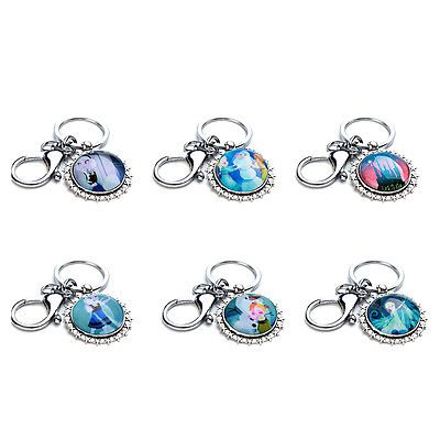 New 6pcs Frozen Glass Cabochon Antique Silver Pendant Key Chains Key Holder