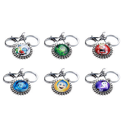 New 6pcs Inside out Glass Cabochon Antique Silver Pendant Key Chains Key Holder