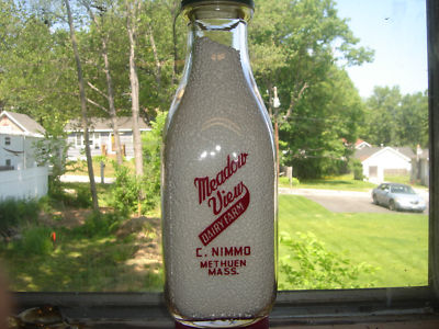 MEADOW VIEW DAIRY SQ MILK BOTTLE C. NIMMO METHUEN MASS