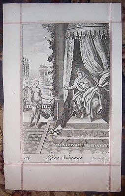 1701 FOLIO COPPER PLATE BIBLE ENGRAVING/ROYAUMONT/RR/KING SOLOMON/WISDOM!