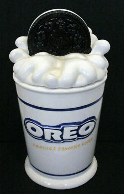 ADORABLE OREO COOKIE GLASS OF MILK & COOKIE COOKIE JAR