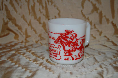Vtg Davy Crockett Indian Fighter White Glass Milk Mug
