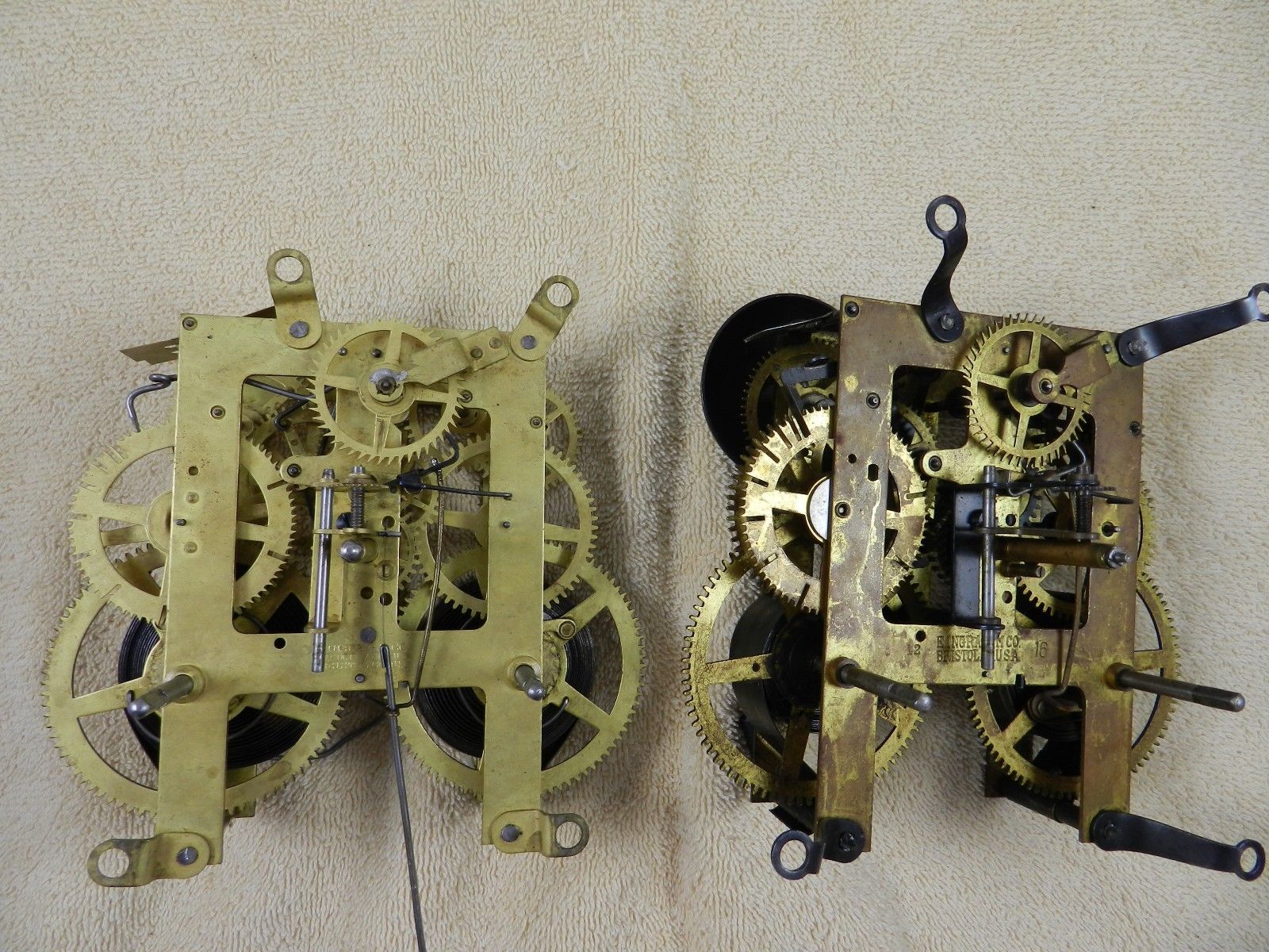 Title (ebay affiliate link): Lot #5 of 2 antique key wind and chiming clock movements made by Ingraham in USA