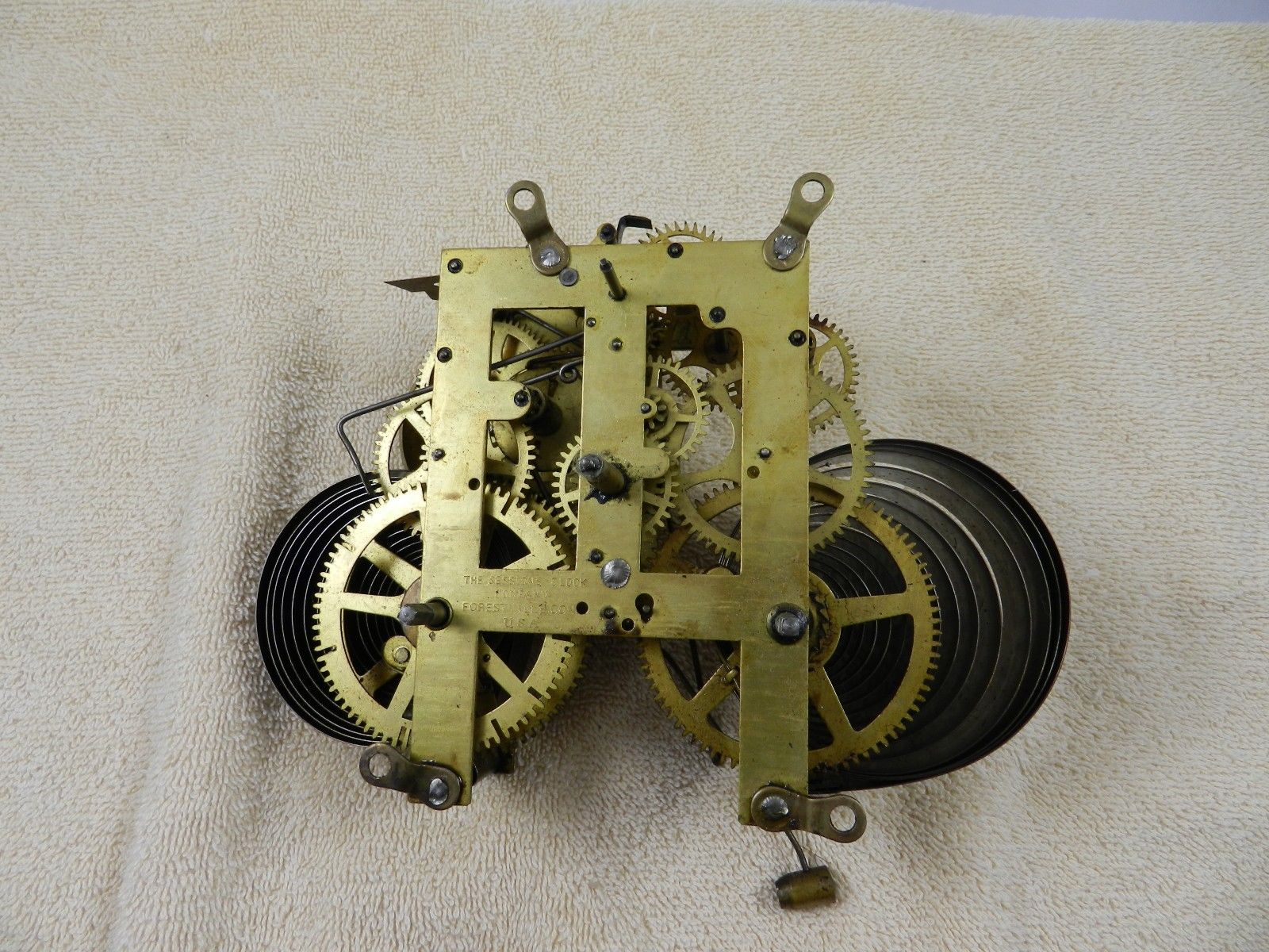 Antique key wind & chiming clock movement with bell on half hour made by Session