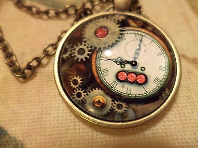 LATEST CONTEMPORARY DICHROIC CLOCK RESIN ANTIQUE GOLD PENDANT FASHION NECKLACE!