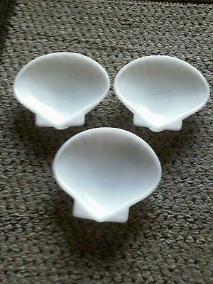 GLASBAKE Shell Shaped White Milk Glass Dishes Set of 3