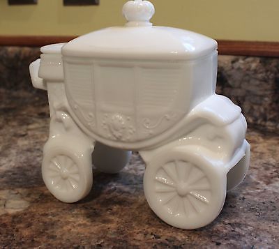 L.E. Smith Milk Glass Cinderalla Royal Coach Carriage Dresser or Candy Jar